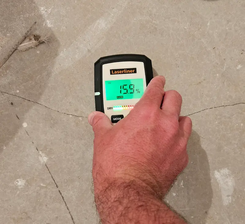 Contrôle du support existant, vérification de la planéité et mesure de l’humidité.