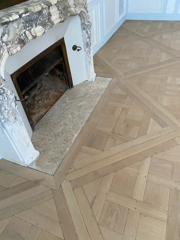 Au dix-huitième siècle, comme au siècle précédent les planchers des appartements sont constitués par des panneaux de parquets d’assemblage carrés de bois de chêne ciré, dont les compartiments sont posés soit à l’équerre, soit en diagonale, avec ou sans frise.